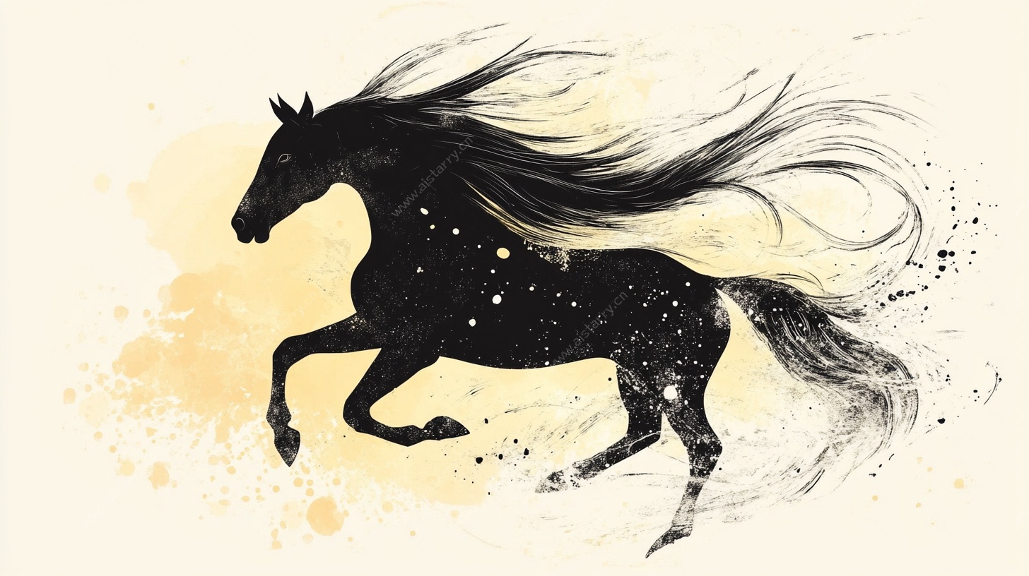 夕阳下骏马驰骋草原