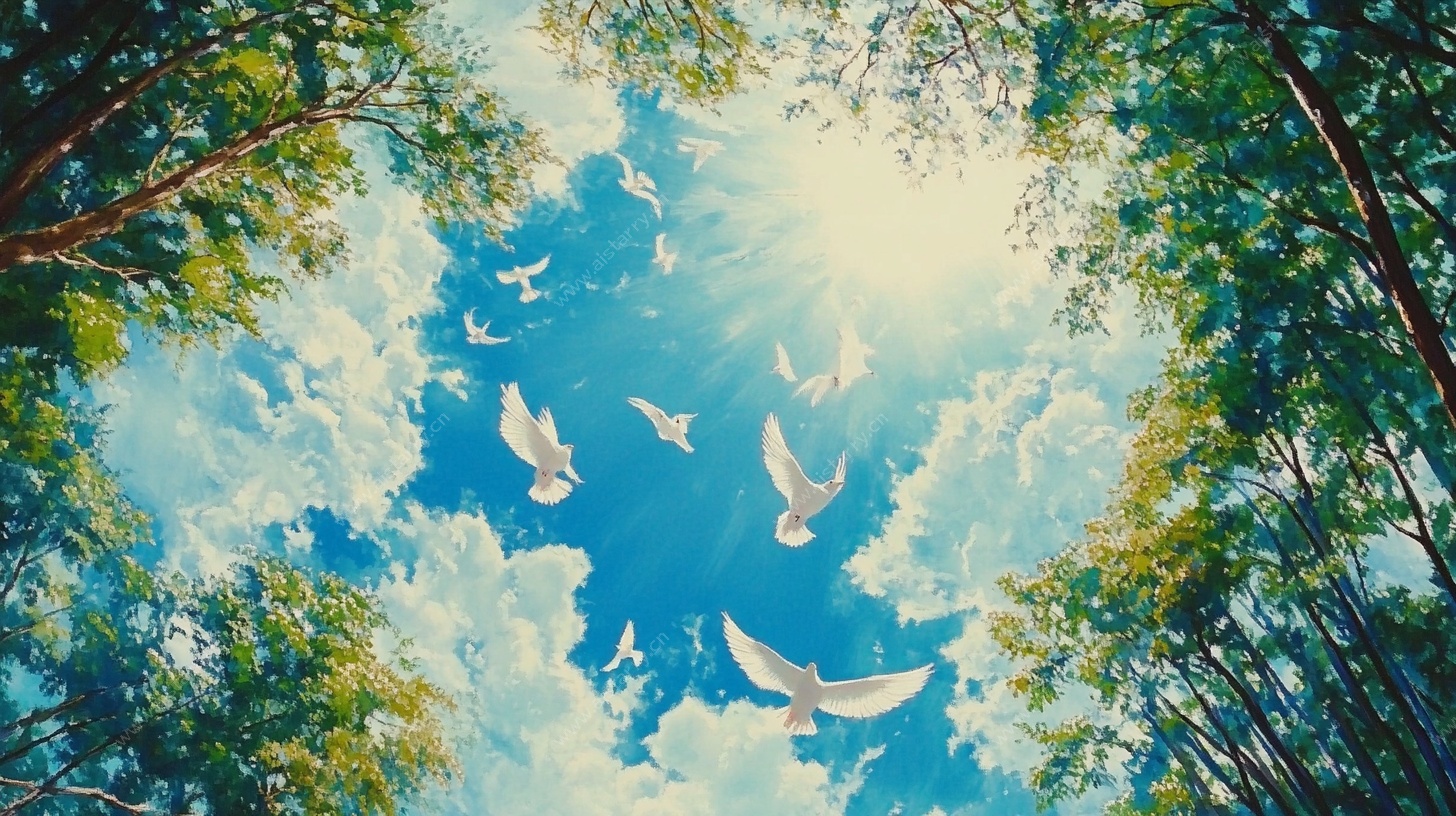 群鸟振翅水墨图