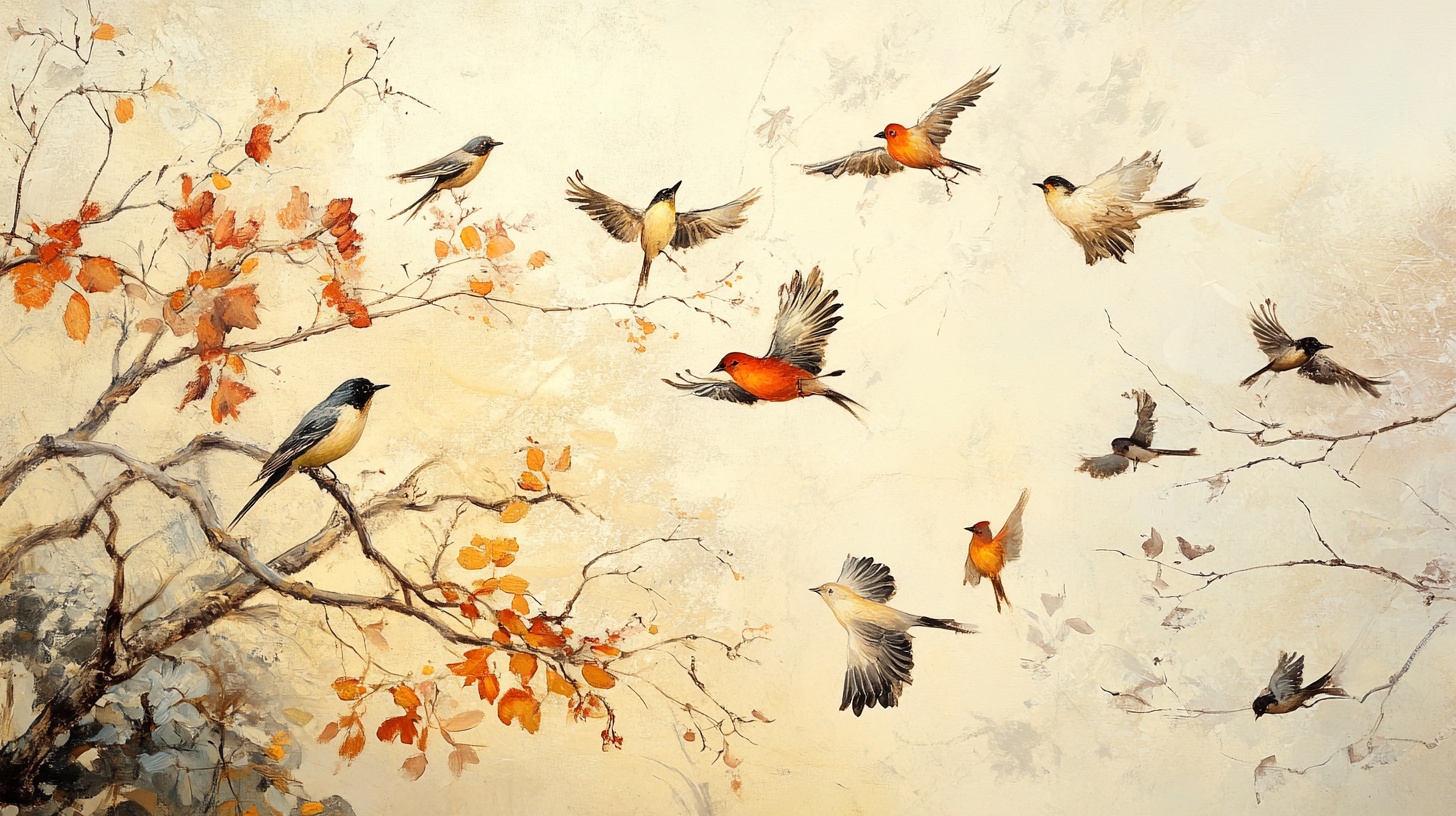 花鸟装饰画 枝头小鸟栖居