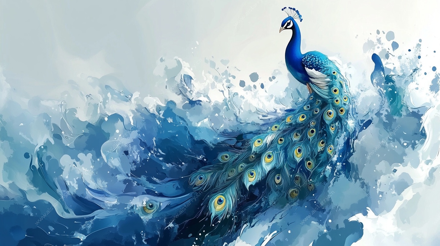双孔雀花卉金底装饰画