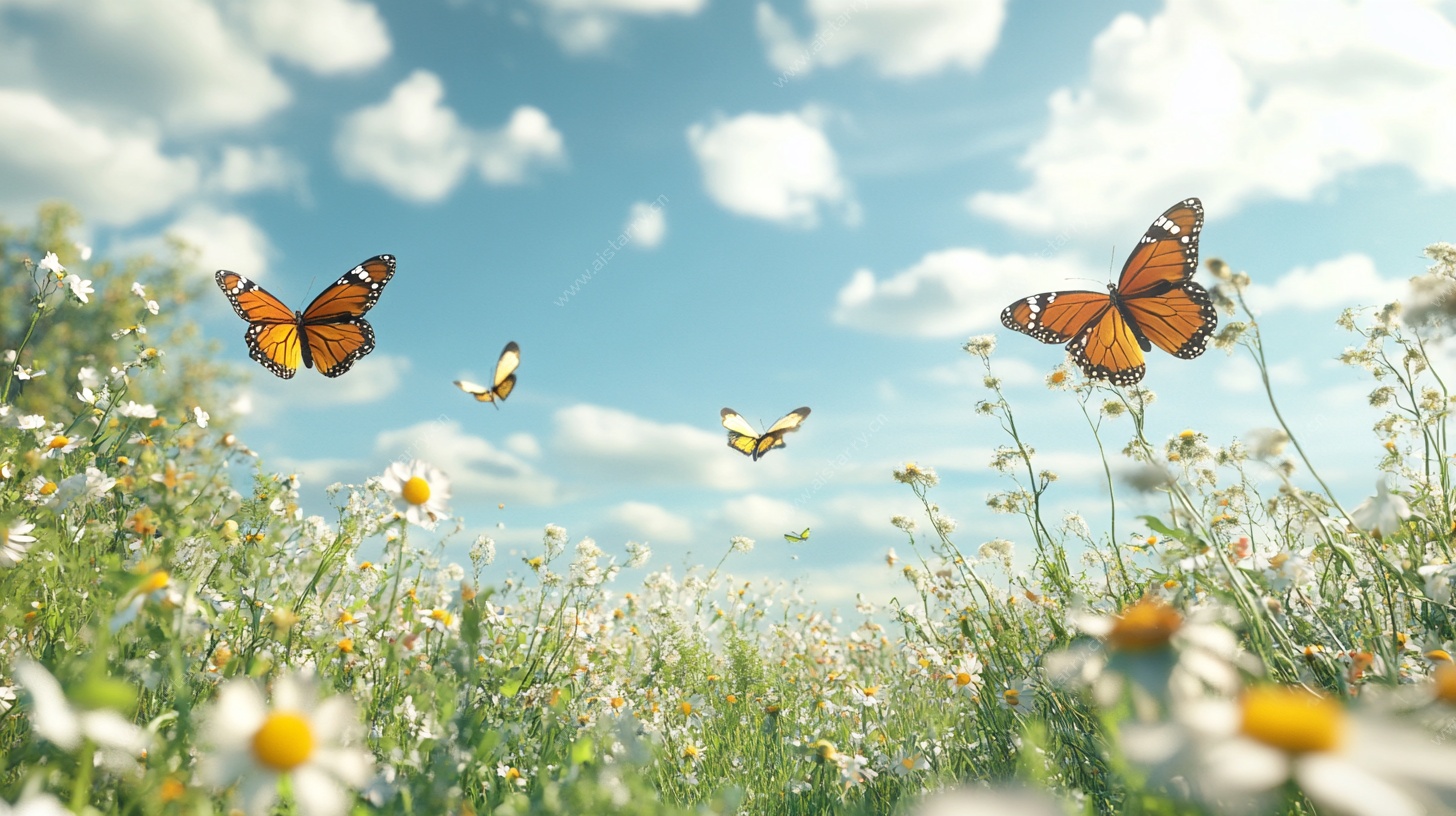 红雀翱翔蓝天