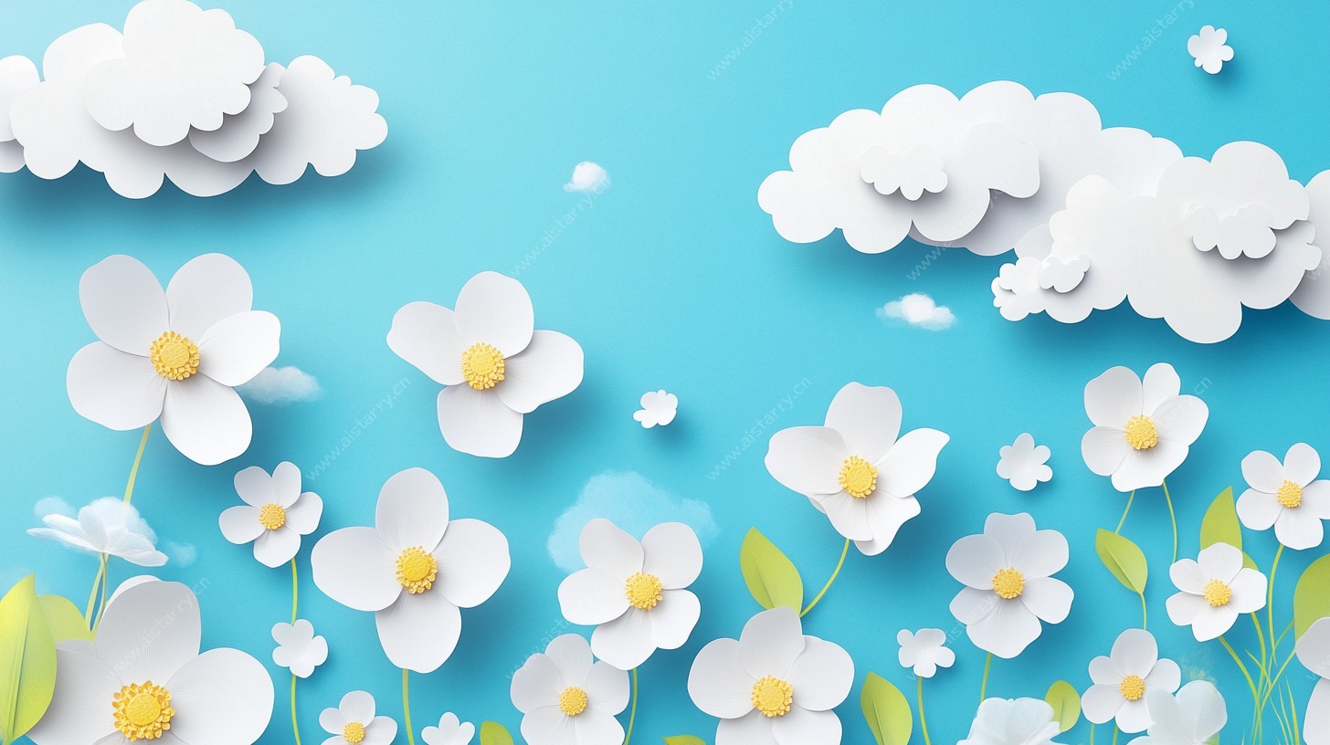 春日绿野卡通风景图